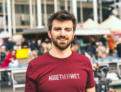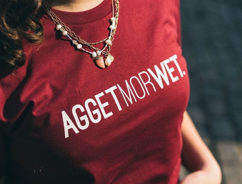 Bordeaux T-shirt met opschrift AGGETMORWET. voor mannen en vrouwen. Als cadeau of gewoon voor jezelf. Recht uit Antwerpen. Met trots voor het dialect.
