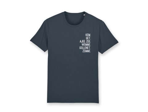 Grijze T-shirt met de vervoeging van het werkwoord 'hebben' in 't Antwerps. Voor volwassenen. Als cadeau of gewoon voor jezelf. Recht uit Antwerpen. Met trots voor het dialect.