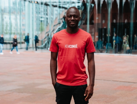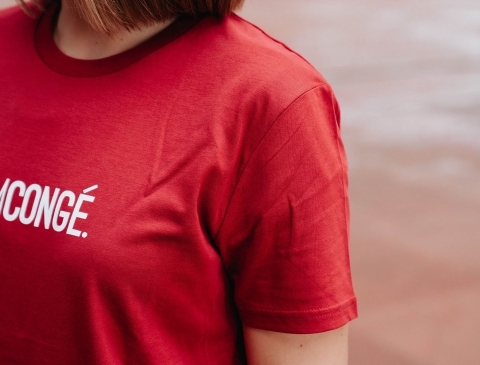 Rode T-shirt met opschrift KEMCONGÉ. voor volwassenen. Als cadeau of gewoon voor jezelf. Recht uit Antwerpen. Met trots voor het dialect.