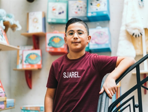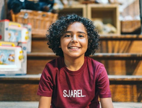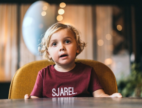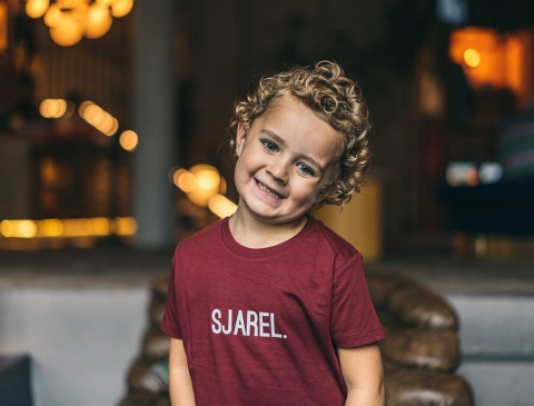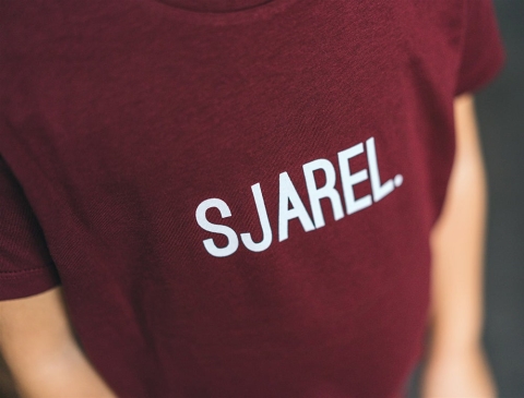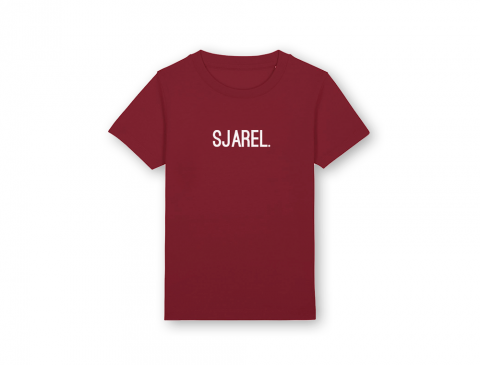 Bordeaux T-shirt met opschrift SJAREL. voor kinderen. Als cadeau of gewoon voor je eigen kind. Recht uit Antwerpen. Met trots voor het dialect.