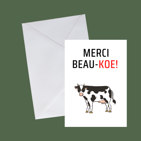Kaartje om te bedanken met koe