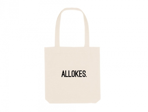 Stevige linnen zak met opschrift ALLOKES. aan de ene zijde en KLEIR. aan de andere kant.