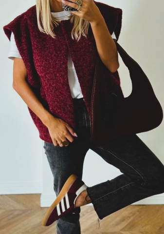 Vest Joline is een mouwloos vest van het merk Schilo-Jolie. Dit wollen trendy vestje is een los model en heeft twee ondiepe zakken. verkrijgbaar in 3 verschillende kleuren.