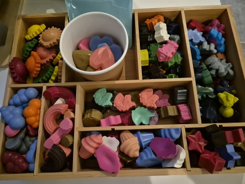 Stel zelf je doosjes/zakje samen waskrijtjes.