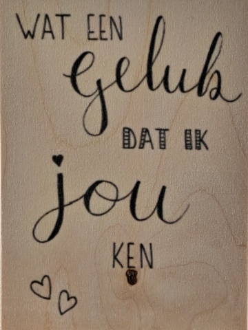 Deze mooie houten kaart, dewelke bedrukt is met een mooie boodschap, past perfect in onze plankjes.