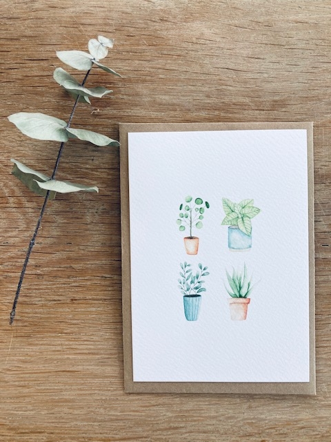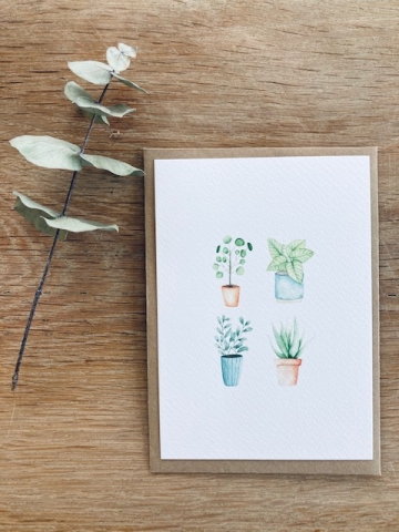 Wenskaart blanco vier bloempotjes inclusief enveloppe