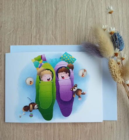 Wenskaart Slaapzak kindjes