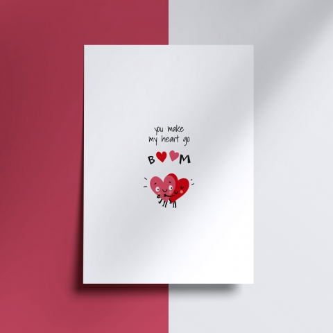 Wie laat jou hart sneller slaan? De achterzijde is blanco, dus ideaal om je eigen tekst op te noteren. Formaat: A6 (10,5 x 14,8 cm) Materiaal: Gmund 300gr is gemaakt van 100% katoen voor een buitengewone zachtheid en haptische sensatie - incl enveloppe Palmpapier Biotop