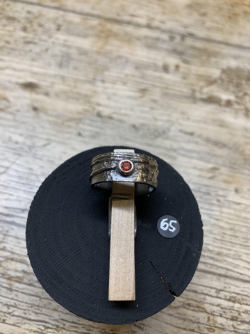Zilveren ring met rode zirconia, gezwart om een oud-zilverlook te bekomen