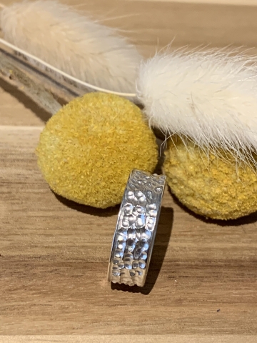 Sterling zilveren ring met speelse structuur, met de hand aangebracht